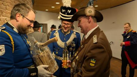 Am 15.03.2025 hatten wir einen Termin außer der Reihe, der insbesondere für einen Schützen unvergesslich bleiben wird: Für unseren Ehrenbrudermeister Jürgen trat das komplette Regiment an und schenkte ihm einen großen Zapfenstreich.