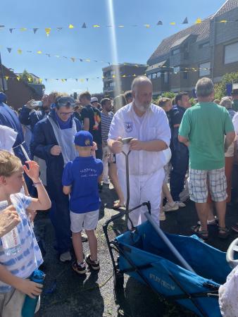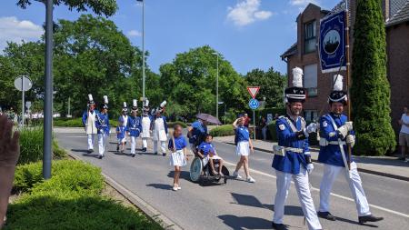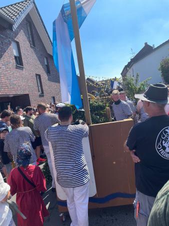 Die folgende Woche war geprägt von letzten Handgriffen: Kränzen, Schmücken der Paradebühne, Wimpelketten im Malteser-Stift aufhängen, Verpflegung organisieren, Feinarbeiten – und natürlich: Das Königsblau der Uniform zum strahlen bringen.