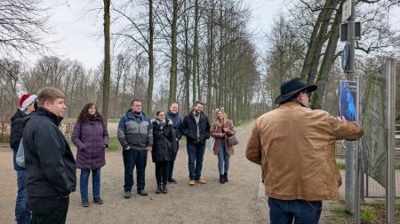 Vor Ort lauschten wir gespannt den Ausführungen von Lukas und Carsten, die uns die Historie des Schlosses und der Umgebung als auch die heutige Bedeutung für die Pferdezucht näherbrachten. Wer es noch nicht gewusst hat, aber hier sitzt das Rheinische Pferdestammbuch e. V., die Zuchtorganisation für das Rheinland, aufgrund der historischen Bedeutung des Schlosses.